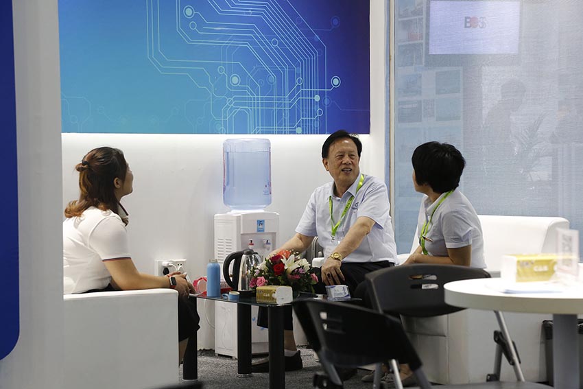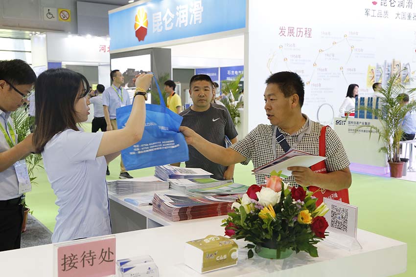 前臺接待客人并派發(fā)產(chǎn)品宣傳資料