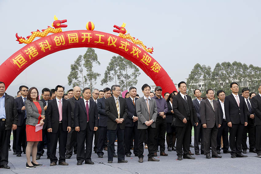 2018年11月24日上午,備受矚目的“恒港科創(chuàng)園”項目開工奠基儀式盛大啟幕。肇慶市委常委吳泰國先生、鼎湖區(qū)區(qū)長劉運通先生、肇慶市人社局局長徐金華先生、鼎湖區(qū)人大常委會主任蘇振棠先生、鼎湖區(qū)政協(xié)主席陸漢勇先生、肇慶市科技局副局長李文杰先生、肇慶市經(jīng)信局黨組成員陳彬建先生、鼎湖區(qū)委副書記鄒會雄先生以及鼎湖區(qū)黨政領(lǐng)導(dǎo)班子其他成員、桂城街道辦事處主要領(lǐng)導(dǎo)、區(qū)直及市駐區(qū)有關(guān)部門的主要領(lǐng)導(dǎo)及分管領(lǐng)導(dǎo)以及本地媒體記者逾百人出席本次奠基儀式,共同見證了這一歷史時刻。