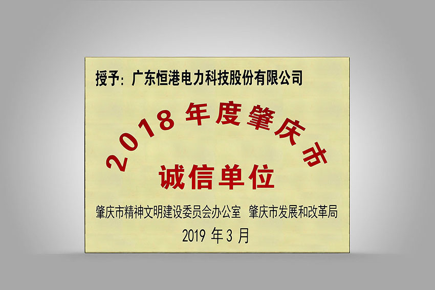 熱烈祝賀我司榮獲“2018年度肇慶市誠信單位”稱號
