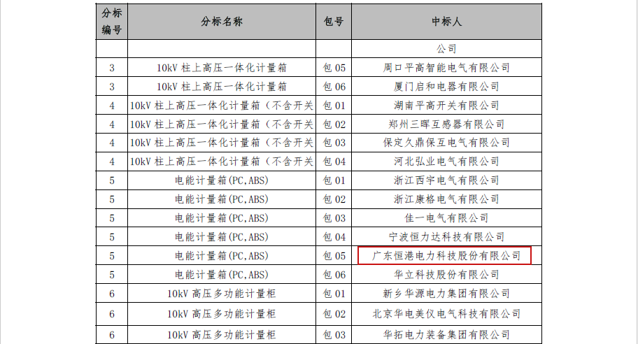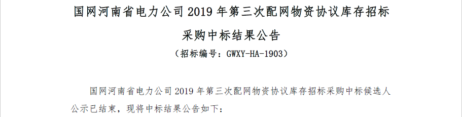 熱烈祝賀我司在國網河南省電力公司2019年第三次配網物資協議庫存招標采購中標