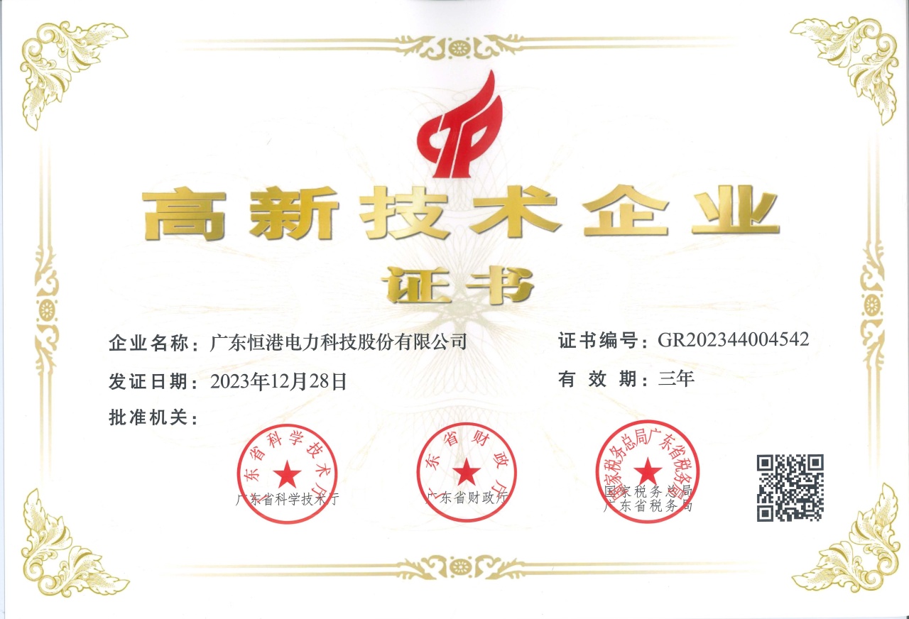 恒港科技公司榮獲高新技術企業證書,近期頒發高新技術企業牌匾,標志著公司在技術創新和研發能力方面得到了權威認可。作為一家致力于推動科技進步的企業,恒港科技一直以來都秉持著不斷創新的理念,通過持續投入研發資源和技術力量,為客戶提供高質量的產品和服務。