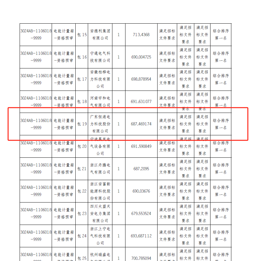 2024年12月3日國網新疆電力有限公司傳來捷報,廣東恒港電力科技股份有限公司中標“國網新疆電力有限公司2024年第二次配網物資協議庫存公開招標采購項目”項目電能計量箱分標。恒港公司一直持著“客戶至上、質量第一”的經營理念,為客戶提供更加優質的產品和服務。讓我們繼續攜手共進,再奪佳績!!!